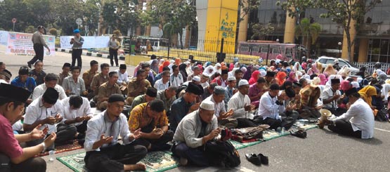 Menitone.com – Seratusan honorer Kategori II (K2) Provinsi Riau tutup jalan Cut Nyak Dien dengan menggelar aksi zikir dan berdoa bersama. Diantara doanya, mereka mengharapkan pertolongan Allah SWT untuk mengetuk hati pemimpin di negeri ini agar status Aparatur Sipil Negara (ASN) bisa mereka sandang tahun ini.