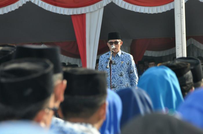 Untuk itu, mari jadikan Panca Prasetya KORPRI sebagai pedoman dalam menangani tugas pokok dan fungsi yang tercermin dari sikap disiplin, budaya bersih, budaya tertib dan budaya kerja. Pelihara dedikasi, integritas dan loyalitas yang tinggi serta tampilkan KORPRI sebagai organisasi kedinasan yang netral dan professional. Karenanya, kepada para Kepala Perangkat Daerah dan unit kerja, Saya minta agar semakin mengedepankan ethos kerja yakni kerja keras, kerja cerdas, kerja tuntas serta loyalitas yang tinggi dalam penanganan mekanisme administrasi pemerintahan, pembangunan serta pengelolaan administrasi keuangan yang semakin baik, transparan, akuntabel yang bermuara pada good governance dan clean government.