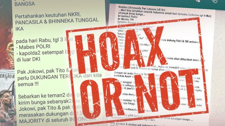 “Hoax itu,” kata Brigjen Chryshnanda Dwilaksana saat dikonfirmasi, Kamis (4/5/2017).