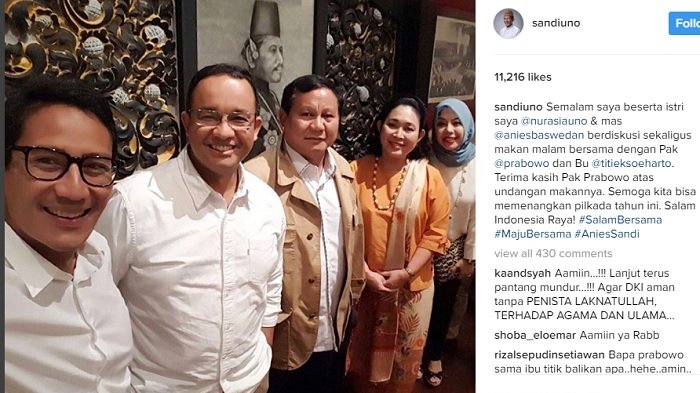 Titiek Soeharto pekan lalu bertemu Anies-Sandi bersama dengan Ketua Umum Partai Gerindra Prabowo Subianto.