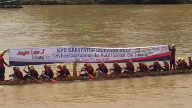 INHU – Setelah sukses mensosialisasikan Pilgubri diacara adat Talang Mamak Kecamatan Rakit Kulim. Kali ini Komisi Pemilihan Umum (KPU) Kabupaten Indragiri Hulu (Inhu) memanfaatkan festival pacu sampan tradisional rayon I Kecamatan Batang Peranap sebagai ajang sosialisasi.